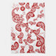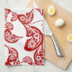 Elegant bohemian red / white peacock design with floral details and a tail made of paisley shapes asian / chinese wedding kitchen towel.