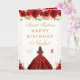 Red Floral Brunette Hair Girl Sweet Sixteen Card