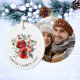 Celebrate the magic of both love and the holiday season with this ceramic Christmas ornament. This ornament complements the red poppy and eucalyptus floral motifs found in our wedding stationery suite, creating a harmonious and memorable connection between your special day and the festive celebrations. The bride and groom's names and wedding date or year can be incorporated into the design, personalised just for you and your significant other. Turn the ornament around, and you'll find your favourite photo, capturing a cherished moment from your wedding day or journey of love. Adorned with the heartwarming message "Merry Christmas," this reverse side serves as a delightful reminder of the love and joy you share as you celebrate the holiday season each year. This ornament will be a loving addition to your Christmas tree as well as a cherished keepsake that will forever hold the memories of your wedding day.
