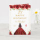 Red Floral Dark Skin Girl Birthday Card