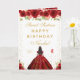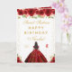 Red Floral Dark Skin Girl Sweet Sixteen Card