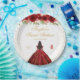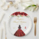 Red Floral Dark Skin Princess Sweet Sixteen Paper Plate