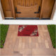 Welcome guests with a striking blend of bold color and soft florals. This red geometric floral door mat features a rich red‑orange background, elegant gold line accents, and beautifully arranged neutral florals that create a warm, inviting entryway.