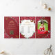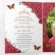Red Floral Gold Butterflies Quinceañera 15 Photos Tri-Fold Invitation