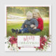 Gorgeous burgundy red, cream and green floral watercolor with hand lettered typography script words "Merry Christmas" Photo Holiday Card. Add your photo, name and date on this rustic yet elegant holiday keepsake your family and friends will cherish all year long.