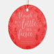 This lovely ornament features the quote from William Shakespeare’s A Midsummer Night’s Dream “Though she be but little, she is fierce” surrounded by flowers and leaves against a red gradient background.