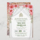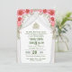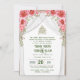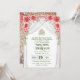 Impress your guests with a stunning Red and Peach Floral Islamic-themed wedding invitation that showcases an exquisite Curtain Floral frame and elegant Arabic calligraphy of the word 'Bismillah.' on the front side and green and peach glitter on the backside of the card. Transform this user-friendly nikah template into a truly unique invitation by effortlessly personalising it with your event details.