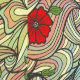 Red Floral Pattern with Colourful Soft Wavy Lines Wallpaper