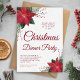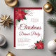 Red Floral Poinsettia Christmas Dinner Party Invitation