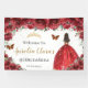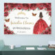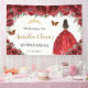 Red Floral Princess Gold Quinceañera Backdrop Banner