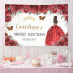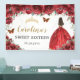 Red Floral Princess Gold Sweet Sixteen 16 Backdrop Banner