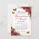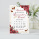 Edit this calendar style red floral Quinceanera Court proposal card with your own details. Change the month and dates. Click "Edit using design tool" to access the design area and move the gold heart icon to mark your occasion's date. Matching items available in store. (c) The Happy Cat Studio