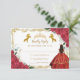 Red Floral Rose Quinceañera Charro Gold Horse Shoe RSVP Card