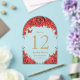 Red Floral Roses Gold Quinceañera 16 Table Number