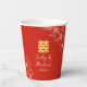 Red floral script Chinese wedding tea ceremony Paper Cups