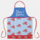 Red Floral Shabby Chic Blue Gingham 'Mom's Kitchen' Apron, with a fully customizable name. Designed from my original garden photo & writing.