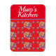 Red Floral Shabby Chic Blue Red Roses 'Mum's Kitchen' magnet, with a fully customizable name. Designed from my original garden photo & writing.