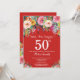 Red Floral Surprise 50th Birthday Invitation for Women. Watercolor Floral Flower. Red Background. Pink, Yellow, Orange, Purple Flower. Adult Birthday. 13th 15th 16th 18th 20th 21st 30th 40th 50th 60th 70th 80th 90th 100th, Any Ages. For further customisation, please click the "Customise it" button and use our design tool to modify this template.