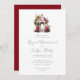 This romantic wedding invitation features a watercolor gazebo decorated with red flowers. Personalise it with the names of the bride and groom in charcoal grey handwriting script and the remaining text in serif font. The back of the card is a coordinating shade of burgundy red. Ideal for an outdoor spring, summer or fall wedding.