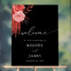 Welcome in your guests to your wedding or party with your photo and name on your Red Floral on Black Wedding Welcome Acrylic Sign. It's made with hand painted, red watercolor florals. It's great for weddings and parties.