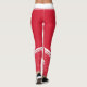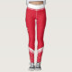 These red stylish workout leggings feature an elegant white floral design on the waistband and on the ankles and calves and white stripes on the waistband.
