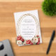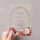A clear, transparent background decorated with red and white roses, florals. A faux gold oval frame. Personalise and add your names and details.