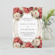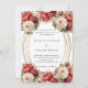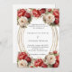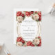 A white background decorated with red and white roses, florals. A faux gold oval frame. Personalise and add your names and details.