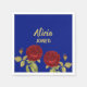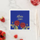 Red flower and leaves blue napkin