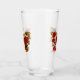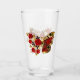 Red peacock eyed flower butterfly with red textured wing, decorated with composition of red, artistically painted roses with golden stems and leaves on white background.