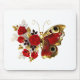 Red flower butterfly with red roses mouse pad