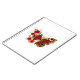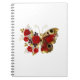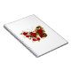 Red peacock eyed flower butterfly with red textured wing, decorated with composition of red, artistically painted roses with golden stems and leaves on white background.