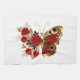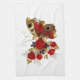 Red flower butterfly with red roses tea towel