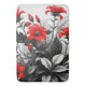 Red Flower On Black White Plant Bath Mat