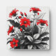 Red Flower On Black White Plant Plaque