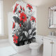 Red Flower On Black White Plant Shower Curtain