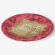 Red Flowers Gold Faux Foil Happy Holidays Paper Plate