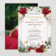 Red Flowers Gold Foil Butterflies Quinceanera Invitation