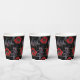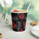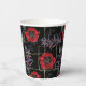 Red flowers on black. paper cups