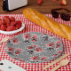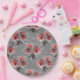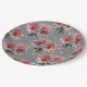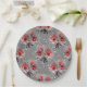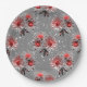 Red flowers on grey paper plate
