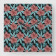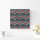 Red flowers tropical seamless pattern &blue leaves square wall clock