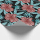 Red flowers tropical seamless pattern &blue leaves wrapping paper