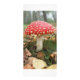 A rack card showing red toadstool fly agaric mushroom among the yellow leaves and forest as a background
