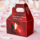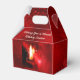 The reflected flame of a single red candle glows brightly on the front of this favour box, covered in a look of textured foil in a deep, deep red. "Wishing You A Blessed Holiday Season" is in a pale gold script font. The photo of the red candle, its flame and reflected flame and star-filled black and red muzzy background blend into a background of deep red. The inscription, "Wishing You A Blessed Holiday Season" can be edited easily to anything you like. Just hit "Personalise" and get started.