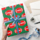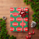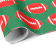 Red Footballs on Green Background Christmas Gift Wrapping Paper