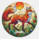 This vibrant design replicates the look of stained glass and features a handsome red fox under a yellow sun.