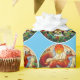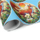 This vibrant design replicates the look of stained glass and features a handsome red fox under a yellow sun.