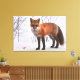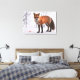 Wildlife stretched canvas, with a photograph of a red fox in the snow and a single red cap mushroom. Perfect wall decor for any animal lover.