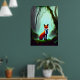 A red fox sitting in the jungle, you tress in the background. This is a AI generated art.