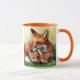 AI generated artwork of a tender moment between a red fox family (mother and two kits) snuggling in the grass.