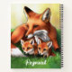 AI generated artwork of a tender moment between a red fox family (mother and two kits) snuggling in the grass. Personalise with a name or meme. Reverse shows identical design.